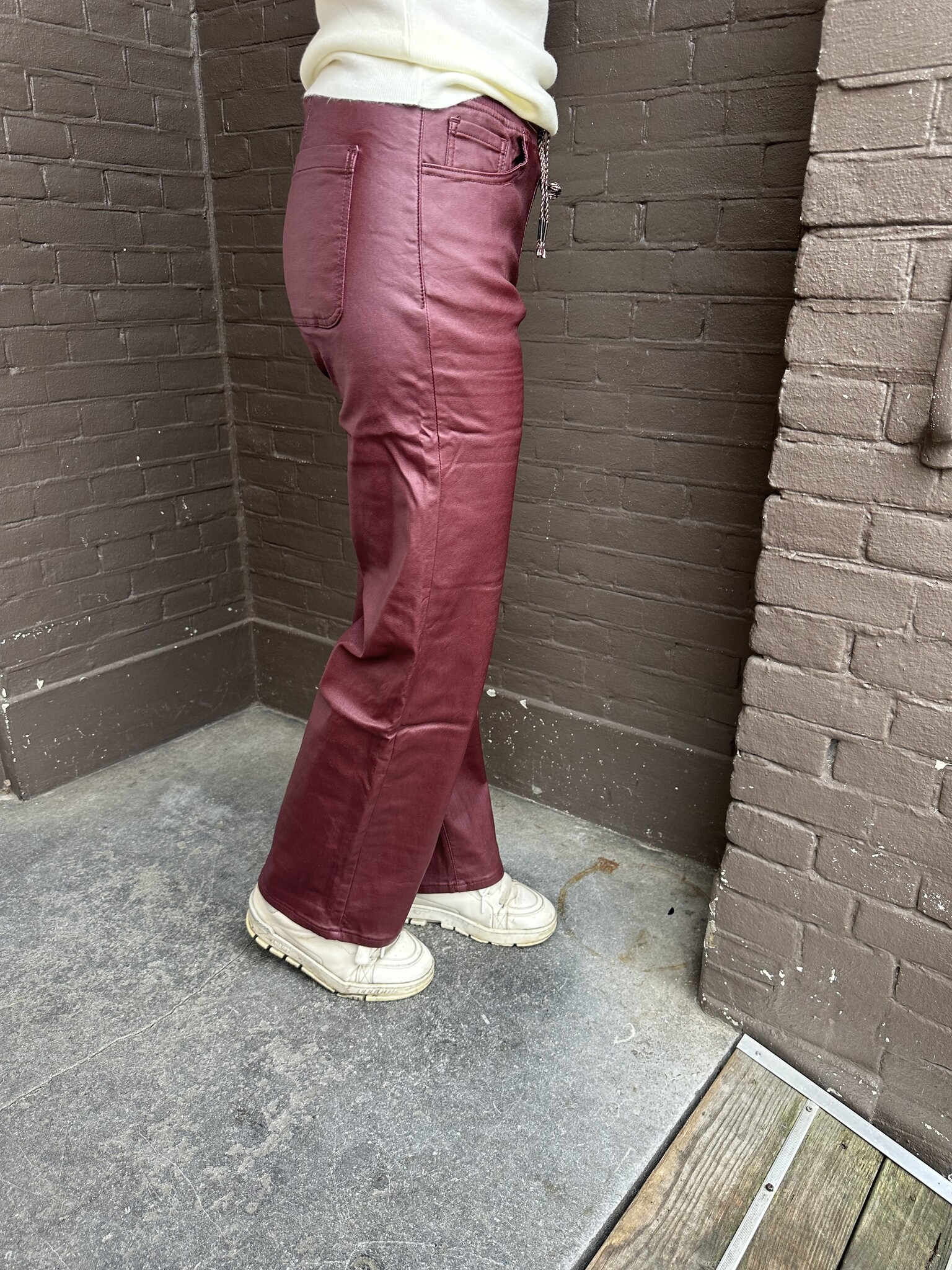 Broek leer wide leg bordeaux