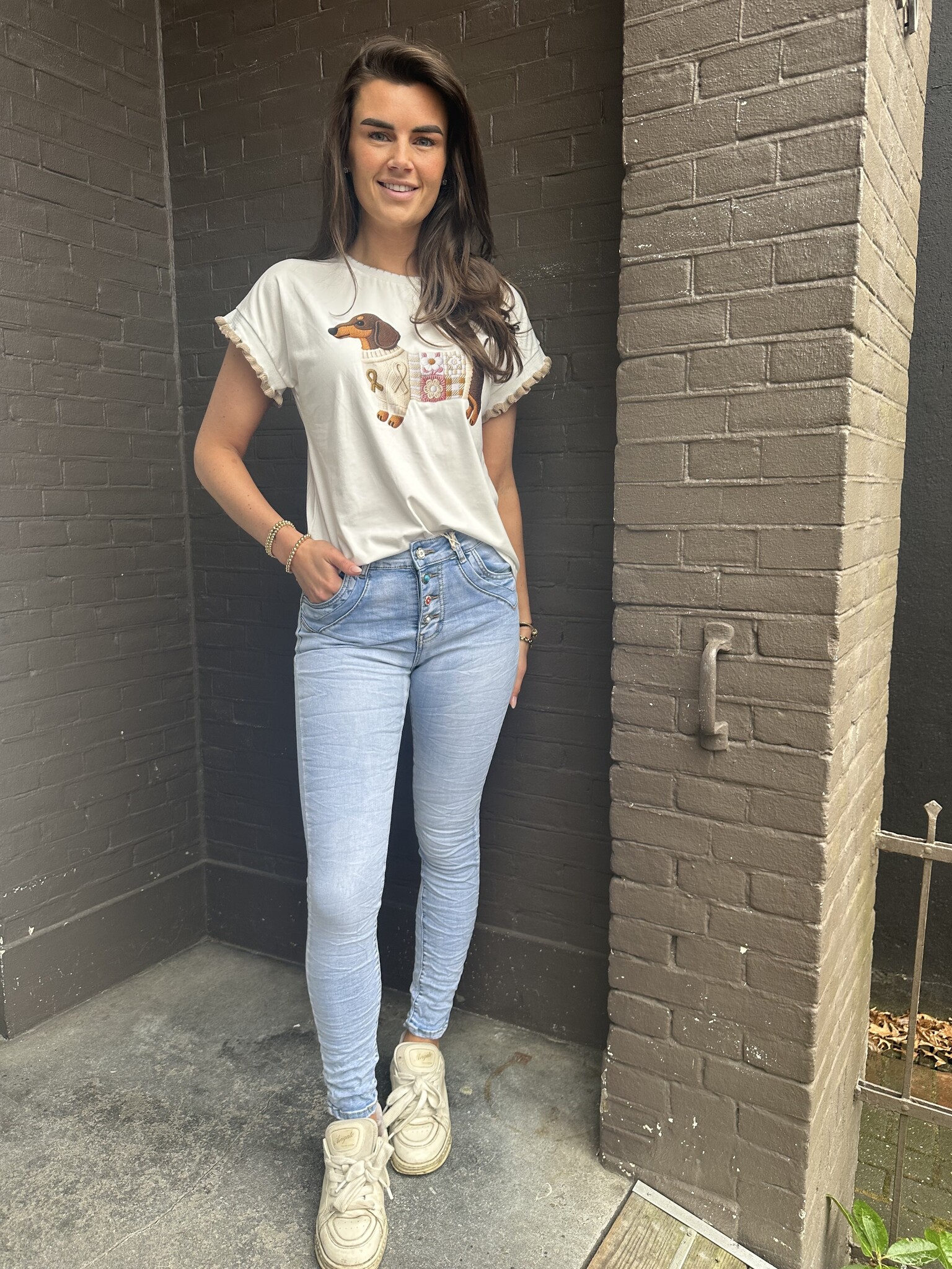 Mooie stretch jeans met schattige knopen.