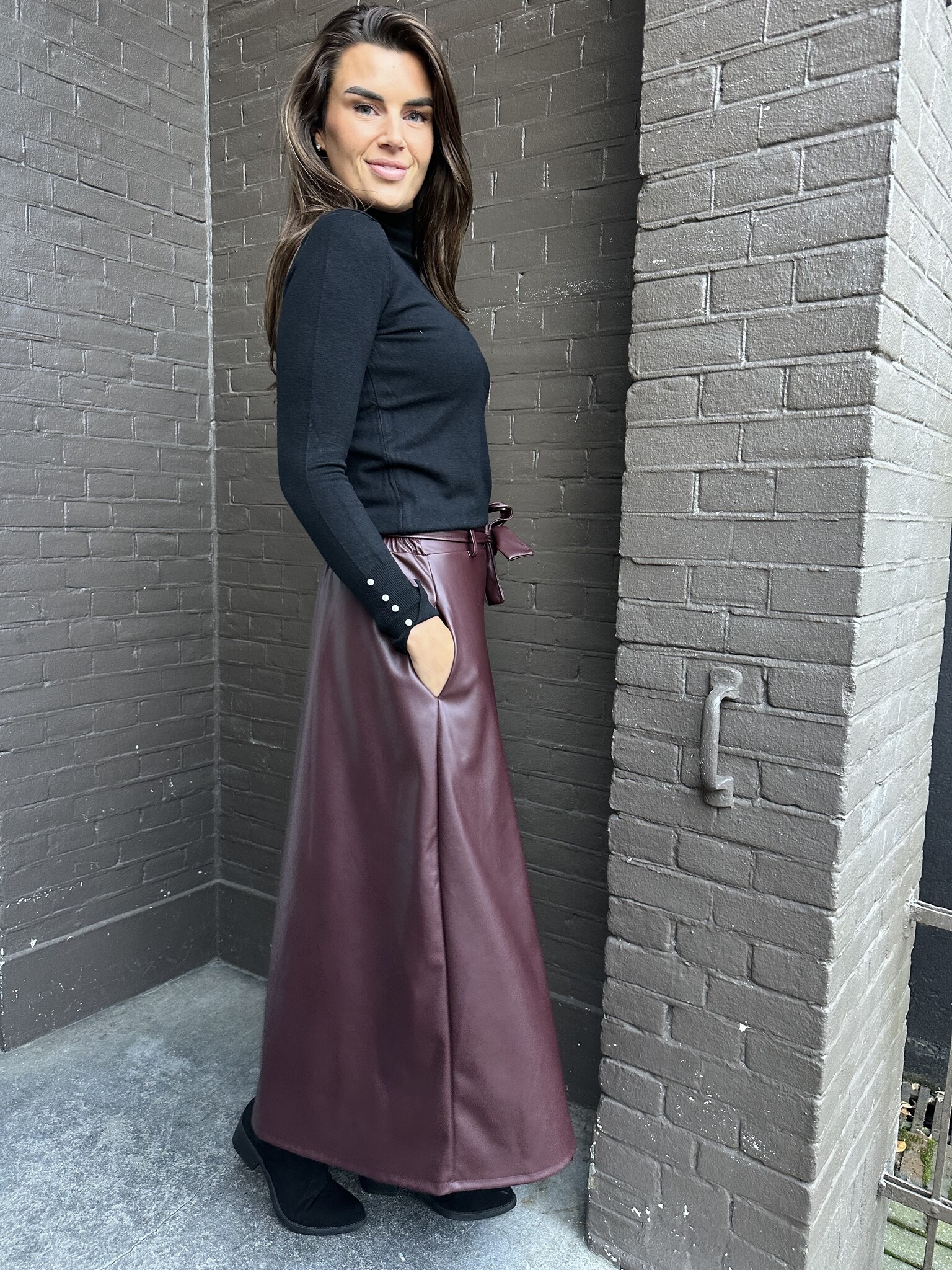 Rok Strik Leer bordeaux