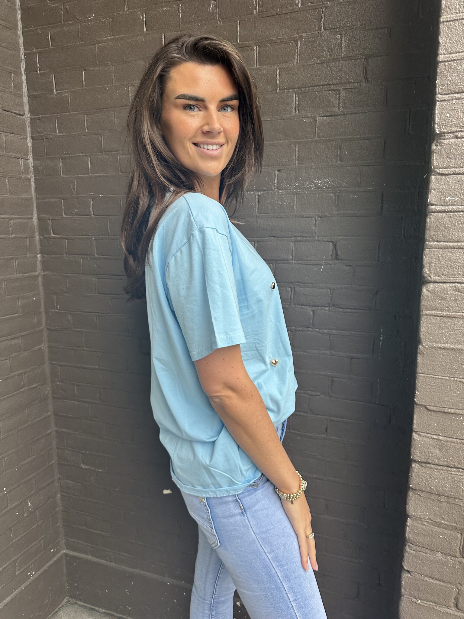 T-shirt Hart Blauw/goud