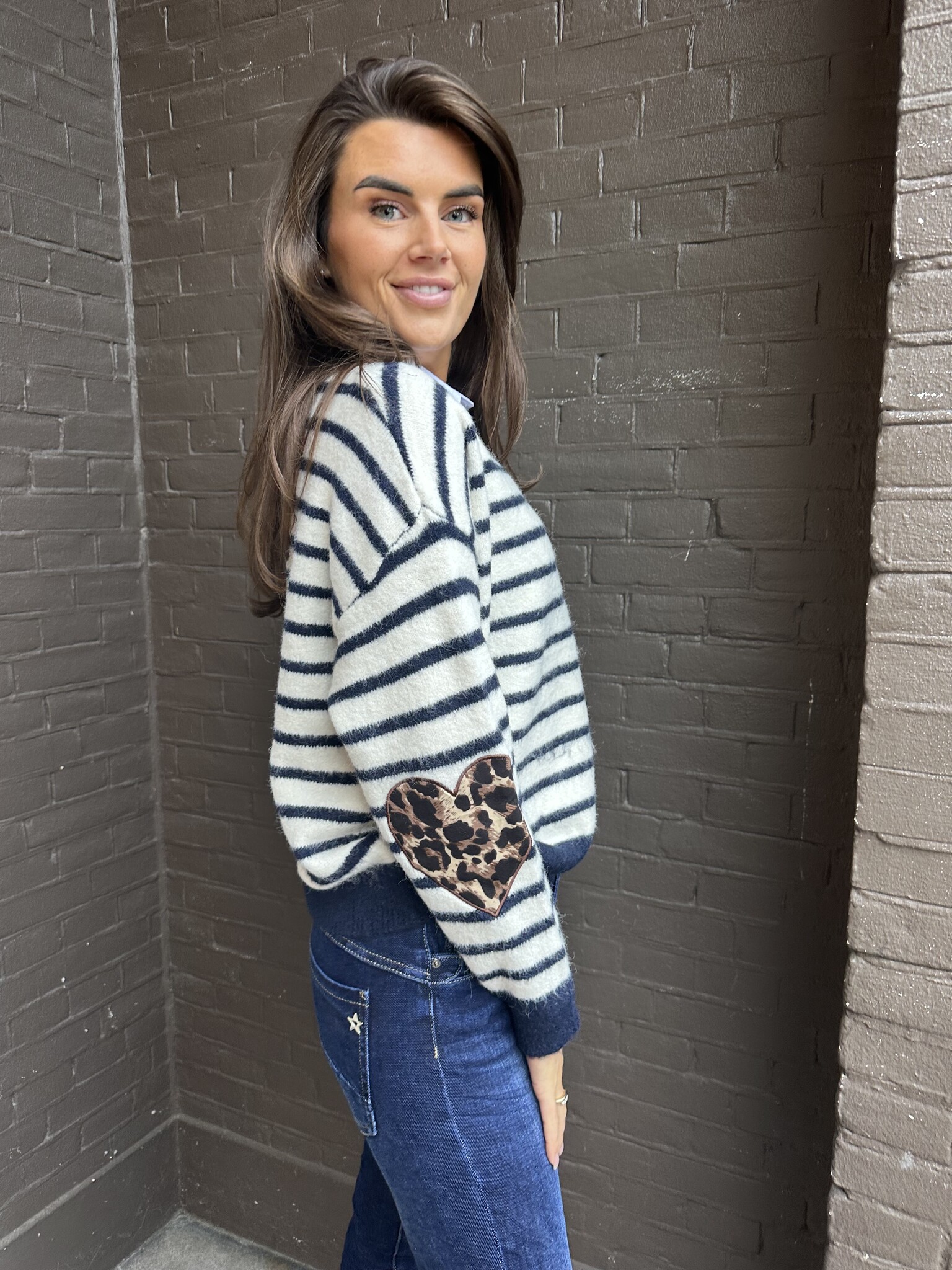 Trui Stripes off-white/donkerblauw